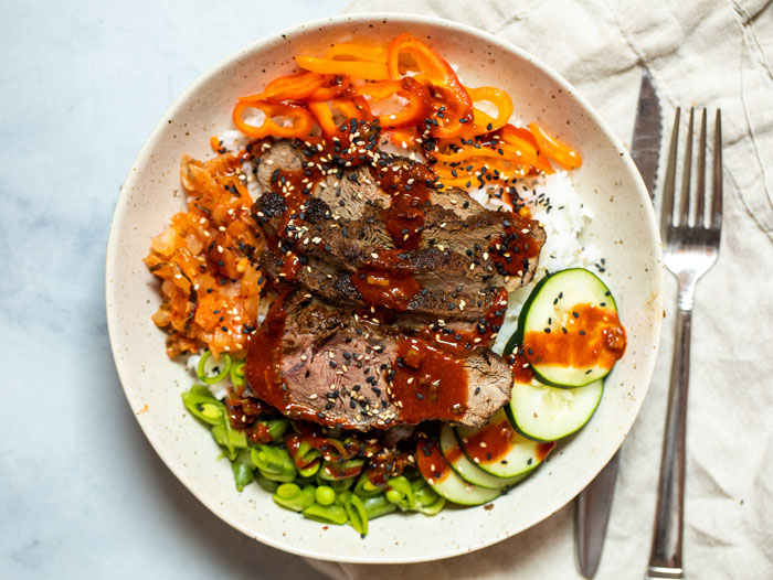 Speaking of convenience, these Gochujang Steak Bowls from Nick Evans of Instagram’s popular Crunch Time Kitchen is one to add to your arsenal. Using Flat Iron or Flank Steak this dish is completely doable if you’re strapped for time – and also a great way to use any leftover steak you already have in the fridge.