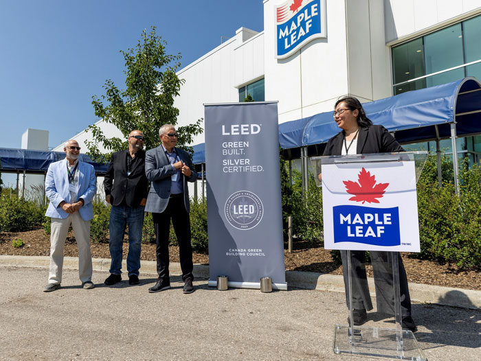 MISSISSAUGA, ON – Maple Leaf Foods, the world’s first major carbon neutral food company, today celebrates being awarded the Leadership in Energy and Environmental Design (LEED) Silver certification by the Canada Green Building Council at its Heritage plant in Hamilton, Ontario. LEED is an international certification recognizing sustainability excellence and green building leadership.