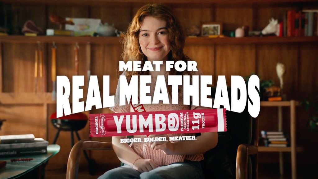 The character, played by an actor chosen for her improv comedy chops, stars in a cheeky new campaign from Havas Chicago for a jerky product called Yumbo (a portmanteau of yum and jumbo).
