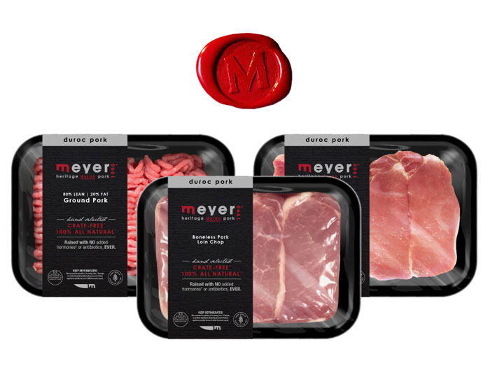 The Meyer Heritage Duroc Pork, a premium natural pork brand, features exceptional marbling with rich and robust flavor. Pork used is 100% all natural, crate free, and vegetarian fed without the use of antibiotics or added hormones to ensure consistent flavor and uncompromising quality. The pork is hand-selected for highly desirable Duroc heritage.