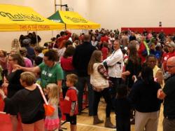 Rainy weather might have moved the event indoors but it did not rain out the crowd. Students, families and community members enjoy a taste of Coney Island at Keysor Elementary School in Kirkwood.