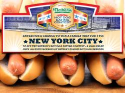 Adding to the hot dog excitement this season is the Nathan's Famous Hot Dog Sweepstakes on Facebook (http://on.fb.me/kaGlxG), which gives consumers a chance to win a trip for four to the 2012 Nathan's Famous Fourth of July International Hot Dog Eating Contest held each year in Coney Island, NY. Additional prizes include hundreds of coupons for free packages of Nathan's Famous Hot Dogs. The sweepstakes runs through July 15, 2011.