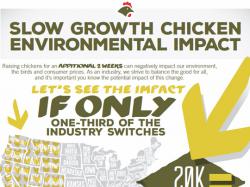 In assessing a transition to a slower growing breed, the environmental impact is an important component often left out of the equation. If only one-third of broiler chicken producers switched to a slower growing breed, nearly 1.5 billion more birds would be needed annually to produce the same amount of meat currently produced – requiring a tremendous increase in water, land and fuel consumption: