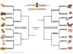 Washington D.C.–In the spirit of the March Madness tournament season, the National Hot Dog and Sausage Council (NHDSC) is proud to announce the ultimate Hot Dogs vs. Sausages tournament bracket. Beginning Monday, March 18, 2013, people can vote for their favorite regional hot dogs and sausages. Voting will be conducted online via polls on the NHDSC Facebook page and will continue throughout the month with a winner announced on April 8th.