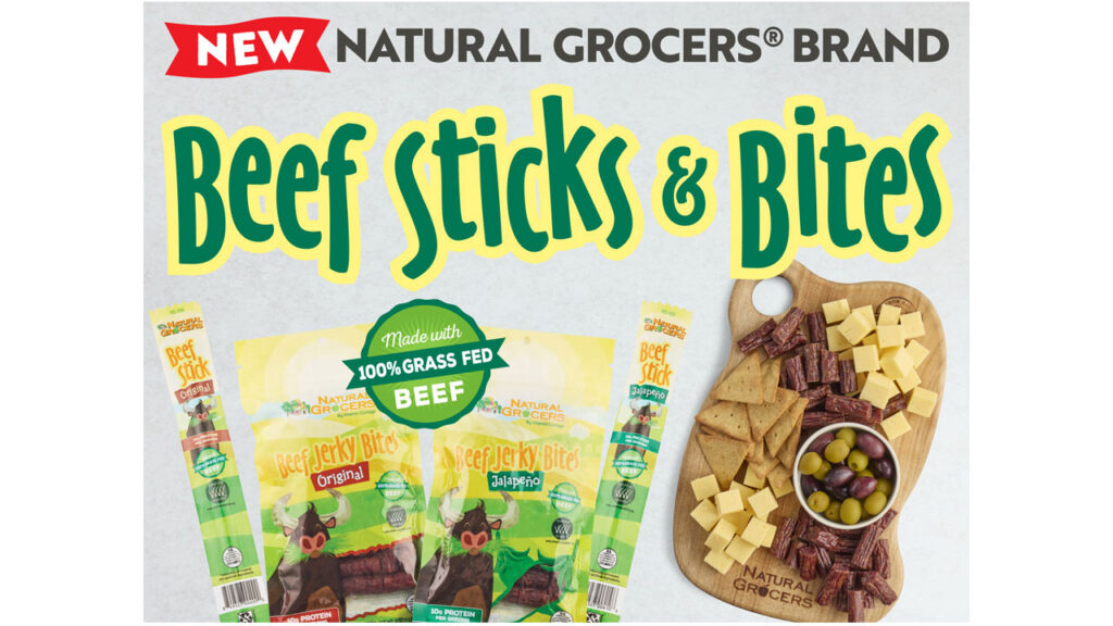 The latest offerings include two new grass-fed beef sticks and two new pouches of grass-fed beef bites, available in original and jalapeño flavors. Like all Natural Grocers Brand products, the sticks and bites meet the company’s rigorous standards under Natural Grocers’ “Commitment to Quality,” one of its Five Founding Principles upheld for more than 70 years.