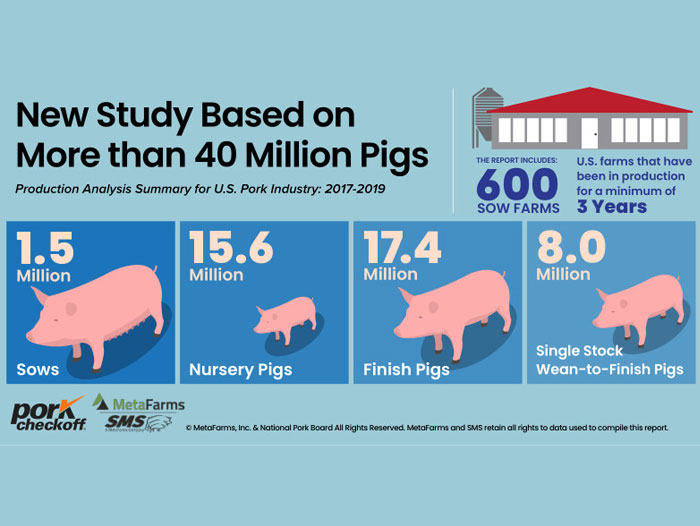 When it comes to the latest Production Analysis Summary for the U.S. Pork Industry, researchers compiled data from millions of pigs from all phases of production to ensure an accurate picture of the productivity of the national swine herd. Study collaborators at Swine Management Services and MetaFarms compiled data from farms across the United States that had been in production for a minimum of three years to establish multi-year comparison analysis. The 2019 dataset represents 1,588,246 sows across 600 farms, as well as 15,666,136 nursery pigs, 17,479,763 finish pigs and 8,023,610 single-stock wean-to-finish pigs.