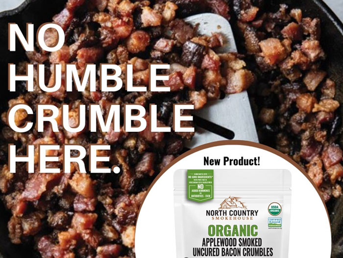 CLAREMONT, N.H. — North Country Smokehouse has introduced the first of several new bacon crumble offerings with the recent launch of their Organic Applewood Smoked Bacon Crumbles currently on shelf at Hannaford Supermarkets.