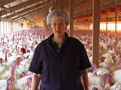 Grandin guides the viewing public with an expert eye on the growth and delivery of 253 million turkeys each year. In the video, the viewer gets an up-close look as Grandin interacts with a flock of 1,500 birds roaming easily down the football-field length of a climate-controlled turkey house. When readied for market, those turkeys ride up into conveyor loading trucks and to an orderly delivery at the processing plant. There, the process of humanely stunning the birds renders them unconscious before processing under the watchful presence of USDA government inspectors enforcing safe and sanitary preparation. At each step along the methodical movement of rinsing, cleaning and separating the meat from the carcass, Grandin provides context and common sense explanations. The reality of raising and preparing turkeys for market is revealed in the video for what it is: a modern process that is humane, safe and efficient.