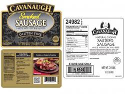 - 2.5 lb. packages of “CAVANAUGH SMOKED SAUSAGE”