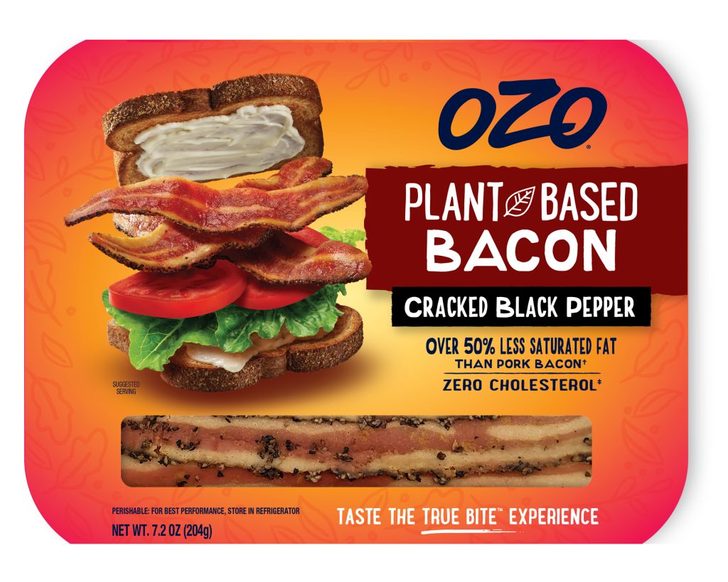 OZO Chicken Cutlets and Shreds are a great swap for traditional chicken in family-favorite recipes and a good source of protein and fiber. The tender and juicy products Caption: OZO plant-based bacon contains less fat than pork bacon and has zero cholesterol. The product will be available in stores later this year.are easy to prepare and create a multi-sensorial eating experience from the look and aroma to the taste and texture. These protein options are available in four delicious seasoning varieties: Garlic & Herb Cutlet, Sea Salt & Pepper Cutlet, BBQ Shreds and Rotisserie-style Shreds. The Plant-Based Chicken Cutlets and Shreds are now in stores that carry OZO products, including Albertsons, Publix, H-E-B and more to come soon. Products will be available for purchase online at ozofoods.com starting February 28.