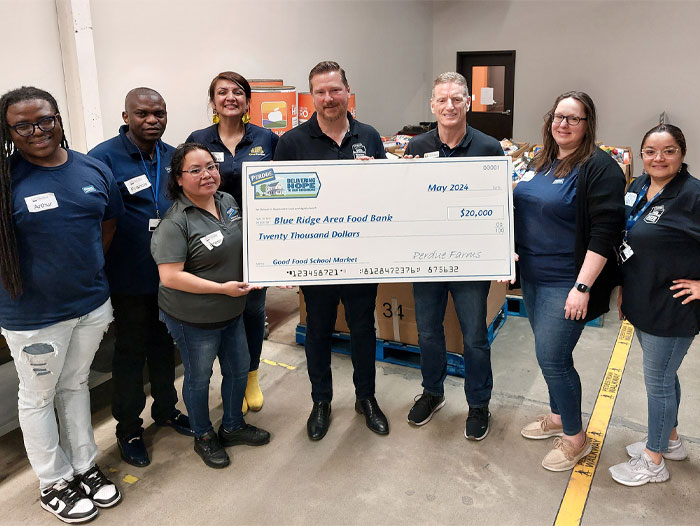 Salisbury, Maryland — Perdue Farms, through its Franklin P. and Arthur W. Perdue Foundation, has awarded a $20,000 grant to Blue Ridge Area Food Bank to help fund its Good Food School Markets. The donation from Perdue’s charitable giving arm is part of the company’s Delivering Hope to Our Neighbors® outreach to improve quality of life and build strong communities.