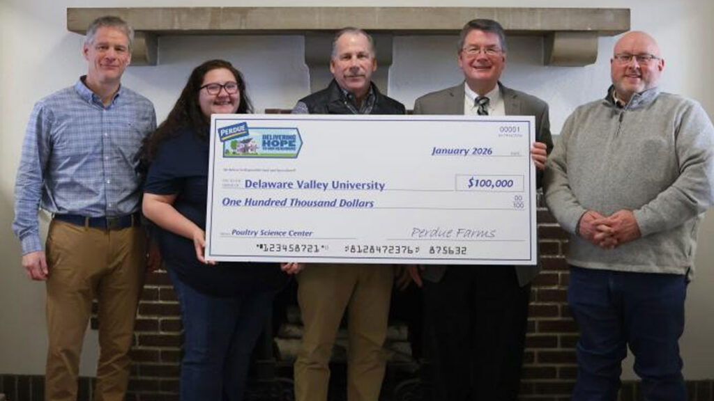 Delaware Valley University has received a $100,000 gift from Maryland-based Perdue Farms and its charitable giving partner the Franklin P. and Arthur W. Perdue Foundation to support the construction of a new Poultry Science Center on its main campus. The Perdue gift reflects the company’s commitment to foster the next generation in agriculture and aligns with its Delivering Hope To Our Neighbors® outreach to improve quality of life and build strong communities.