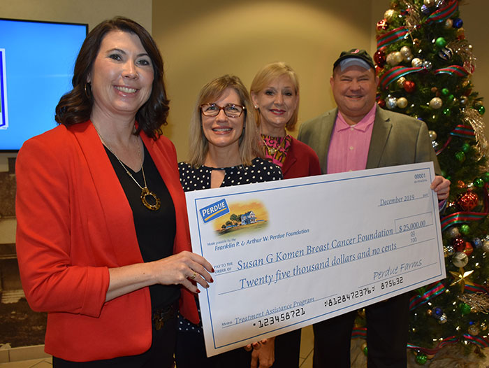 SALISBURY, Md. – The Franklin P. and Arthur W. Perdue Foundation, the charitable giving arm of Perdue Farms, awarded a $25,000 grant to Susan G. Komen Maryland to help low-income women receive treatment for breast cancer.