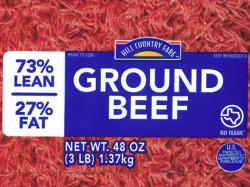 - 10-lb. (4.54 kg) chubs containing “Hill Country Fare Ground Beef” 73% Lean/27% Fat with a Packed On date of 7/26/2016, a Use-By date of 8/15/2016, and bearing case code number 00090180.