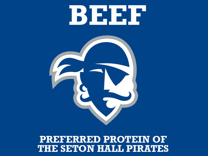 Beef will be positioned front and center with students, athletes, fans, and alumni in a variety of ways including, catching the attention of fans inside the Prudential Center through LED ribbons and the engaging Pirates Shuffle Game Videoboard Feature. This feature is played during all regular season men’s basketball home games.