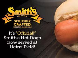 With more than 40 concession areas, Heinz Field will feature Smith's hot dogs, Boski kielbasa, as well as several other Smith's specialty products. Also featured in the stadium will be signage and other brand messages. Smith's will also become a sponsor of Steelers game broadcasts on more than 30 affiliate stations, Steelers.com website promotions, and in-game product giveaways.