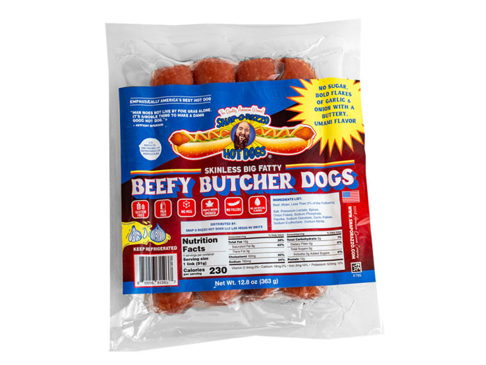 With no MSG, fillers, additives, unnatural beef flavors, or gluten, Snap-O-Razzo hot dogs make you feel good, not guilty.