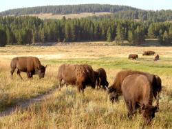 There, in a field that once grew watermelons, clusters of bison roamed, their curled horns and humped backs like dark hills against the nearly cloudless midday sky. They glanced at the approaching pickup with keen eyes, not quite wary, but not uninterested either.