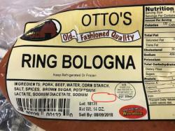 - 14-oz. vacuum-sealed packages containing “OTTO’S Old-Fashioned Quality RING BOLOGNA” with a lot code of 18131 and a “Sell By: 08/09/2018” date.