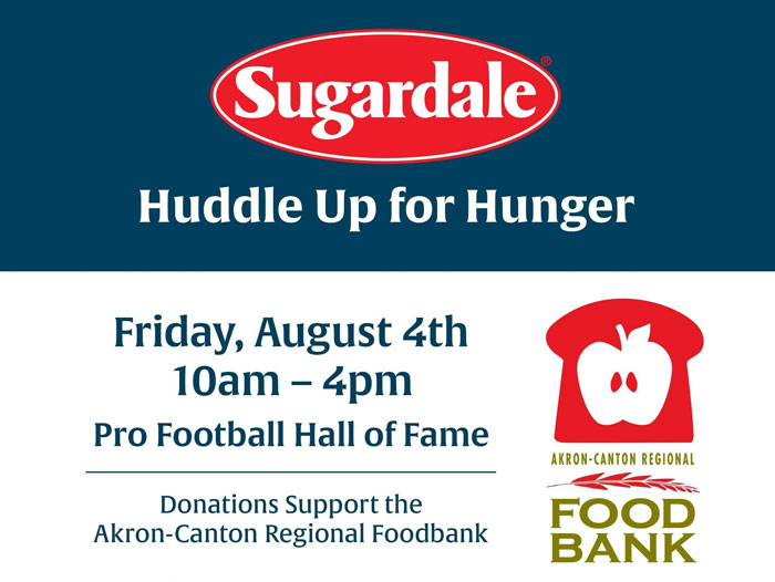 CANTON, Ohio — As the Class of 2023 prepares to take its place among the enshrined NFL legends, Sugardale® and the Pro Football Hall of Fame are partnering to give back to the community through their first “Huddle Up for Hunger” food drive benefiting the Akron-Canton Regional Foodbank on Friday, August 4, from 10:00 am – 4:00 pm.