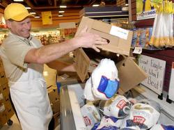 Cromer Ave NW, Canton stocks a cooler with frozen turkeys.