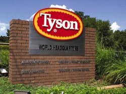 Photo Caption: A Tyson Foods Inc. sign marks the entrance to the companys