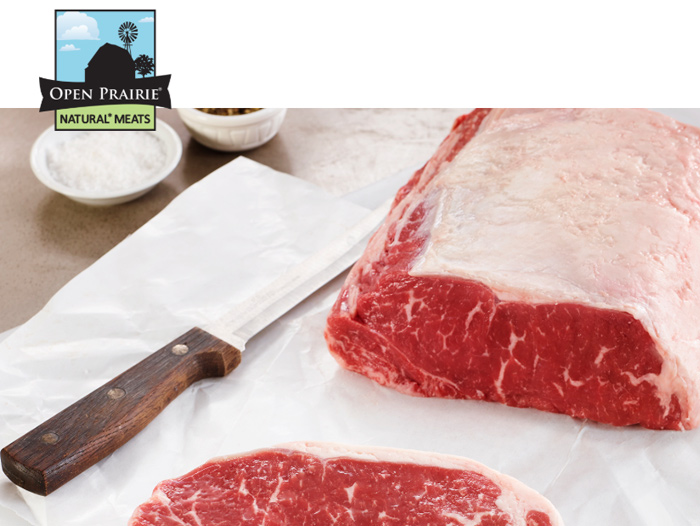 The Open Prairie brand is continually expanding to meet growing demand for the natural beef line. In addition to no antibiotics or added hormones, the product specifications – which are third-party verified – include no artificial ingredients, 100 percent vegetarian diet, traceability to the birth ranch, Angus beef, USDA Prime and Choice and rigorous animal welfare standards.