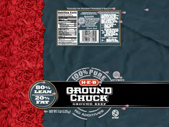 - 5-lb. chubs containing “H-E-B GROUND CHUCK GROUND BEEF 80% LEAN/ 20% FAT.”