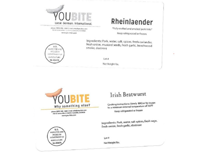 WASHINGTON – YOUBITE, LLC, a Camarillo, Calif. establishment, is recalling approximately 7,197 pounds of raw and ready-to-eat, pork sausage and turkey sausage products that contain either natural sheep or natural pork casings that were not declared on the product label, the U.S. Department of Agriculture’s Food Safety and Inspection Service (FSIS) announced today.