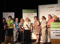 Caption: Representatives from Texas school districts receiving salad bars share the stage at United's Convention with Dan'l Mackey Almy of DMA Solutions (at far right), who championed the goal to reach 100 salad bars donated.
