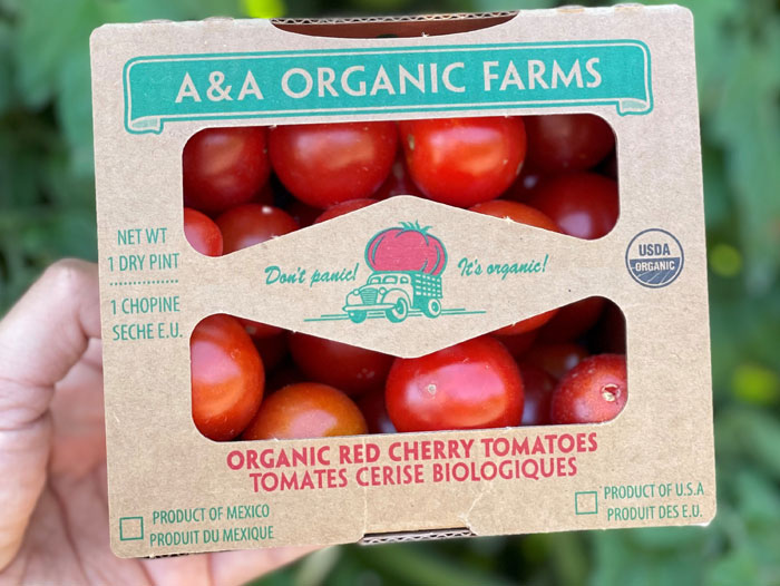 A&A Organic Farms in Watsonville, CA will launch their second-generation compostable/recyclable packaging for Cherry Tomatoes at the OPS show on September 16, 2021, in Monterey, CA. The packaging is bi-lingual for sales in both the US and Canada. These cherry tomatoes are available on a year around basis.