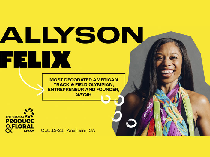 Newark, DE. and Washington, D.C. – Insights from Allyson Felix, the most decorated American track and field Olympian, entrepreneur and founder of Saysh, will bolster the produce and floral industries’ support for women as part of IFPA’s women’s portfolio and Diversity, Equity, and Inclusion efforts. Speaking at the Women’s Fresh Perspectives Breakfast, Saturday, Oct. 21, she is one of The Global Produce & Floral Show keynote speakers.