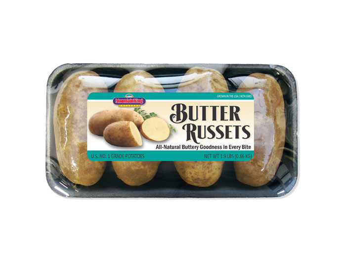 MountainKing Butter Russets are available in 5# bags and, for the first time, in four-pack trays and 10# poly bags. Both the 5# and new 10# bags are packaged with Kwik Lok recipe tags featuring Butter Russet recipes designed to bring out the best of the variety’s flavor and texture. The company’s Butter Reds are fresh-packed in 3#, 5# and 10# poly bags while its Butter Golds are packaged in 5#, 10# and 15# poly bags.