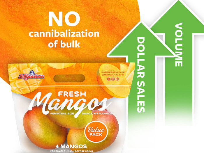 Shoppers want value, evidenced by 19% of last year’s mango spend in club stores.2 Mission’s Retail Ready Mango Bag delivers with:
