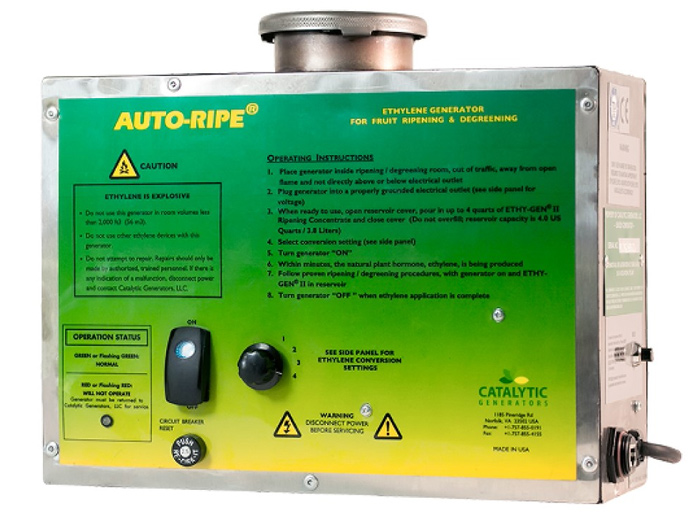NORFOLK, VIRGINIA, USA – We often hear ripeners across the industry describe the limited space available within some ripening rooms.  To solve this issue, Catalytic Generators has specifically engineered a compact ethylene application system, the Auto Ripe® Generator.