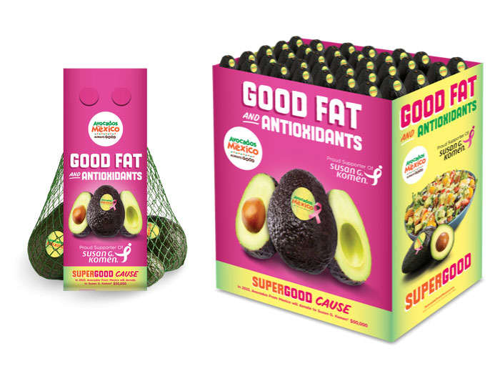 During National Breast Cancer Awareness Month, Avocados From Mexico will donate $50,000 to Susan G. Komen and feature pink packaging as part of its Super Good shopper promotion. The co-branded program is available nationwide and includes pink displays and thematic packaging to drive consumer awareness for breast cancer.
