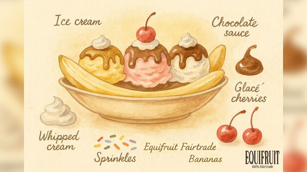 This year, Equifruit has whipped up a next-level banana split recipe that combines serious sugary indulgence with positive social impact, using their signature Equifruit Fairtrade bananas. It’s nostalgic. It’s over the top. And it’s made with bananas that support a fairer food system.