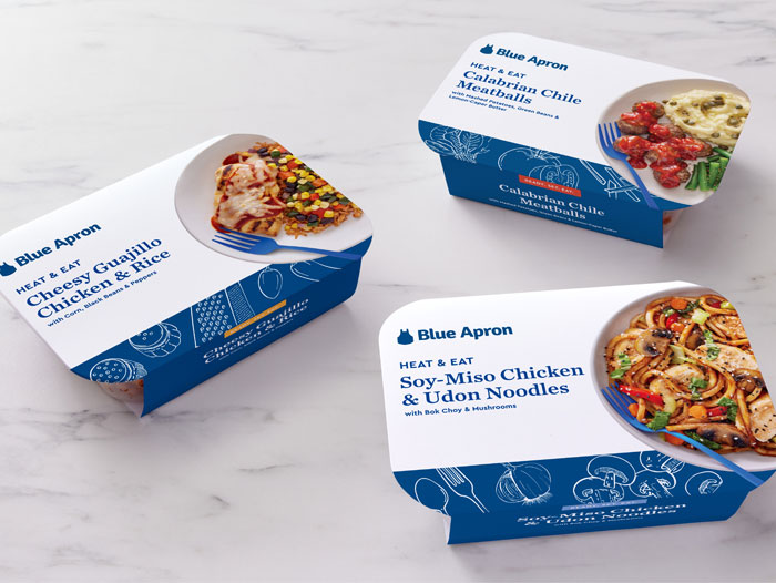 Based on some of Blue Apron’s best-selling and top-rated dishes, Heat & Eat are prepared, single-serving meals that are ready in 5 minutes or less without sacrificing quality for convenience. Whether customers are looking for a last minute, quick dinner option for one, or to complement a grocery order, Heat & Eat meals are designed to make meal-time a bit easier.