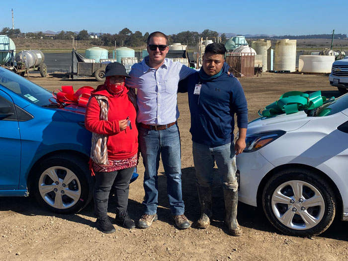 At the end of the day, Bobalu employees Guillermo and Eva both drove new cars off the ranch parking lot. RC was pleased to be able to award the cars to employees that have both been with Bobalu since the company started in Santa Maria several year ago.