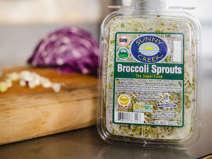 “I’ve been a longtime advocate for the many health benefits of including broccoli sprouts in a person’s daily diet,” says Ed Mills, CEO of Sunny Creek Farm—a leading producer of many organic sprouts and vegetables in Tyron, NC. “I have been consuming around one and a half ounces of broccoli sprouts for decades to help me manage my underlying genetic health concerns very successfully. I’ve also worked with many medical research professionals to help spread the science behind their findings regarding sulforaphane.”