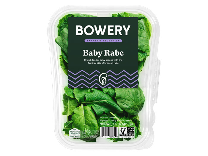 Baby Rabe is the latest commercial introduction of a Bowery R&D product at the retail aisle. On the heels of the company’s latest Series C fundraise, Bowery will continue to focus on innovation at the category level as it remains committed to its quest for the next generation of leafy greens, as well as the development of new fruit and vegetable cultivars designed specifically for use in its indoor, proprietary growing system.