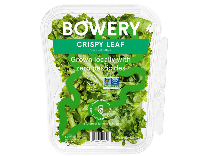 Crispy Leaf is grown locally at Bowery’s commercial farms in Kearny, New Jersey, and White Marsh, Maryland, and has zero pesticides. The mild and versatile green is the ideal base for salads and grain bowls and serves well as a culinary garnish. The suggested retail price is $3.99 for each 4.5oz package.