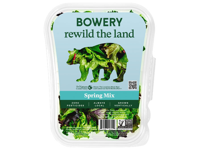Bowery is the largest vertical farming company in the U.S., now available in over 1,000 retail stores, including new partnerships with Wakefern and FreshDirect. Bowery’s ‘Rewild the Land’ packaging can be found starting April 4th in all FreshDirect regions and Wakefern banners including Shoprite, The Fresh Grocer, and Dearborn Market (more than 200 locations), plus retail partners such as Whole Foods Market, Giant Food, and Walmart. Customers can scan a QR code on the pack to learn more about Bowery’s Rewilding initiative.