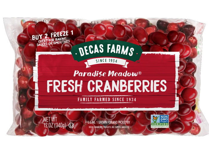There continues to be opportunities for significant growth across the fresh cranberry category which grew over 4.1% in 2020. Bridges will be able to offer both 8oz. and 12 oz. Patience Fruit & Co. brand organic cranberries and 12 oz. Decas Farms brand conventional cranberries from October through December shipping from three locations – Carver MA, Los Angeles, CA, and Vineland, NJ.