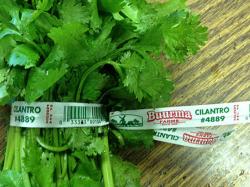 Cilantro, fresh, UPC #4889, Lot #02D312A4, GTIN: 0 33383 80104 9