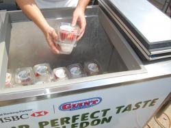 California Giant Berry Farms partnered with HSBC Bank to bring the complete Wimbledon experience to locals and tourists in downtown Manhattan across from Madison Square Park facing the iconic Flat Iron Building. Over 10,000 samples of fresh strawberries and real whipped cream are being given to fans this week from California Giant branded carts. Each container of berries carries a QR code linked to www.calgiant.com/win providing consumers more information about California Giant and the long standing Wimbledon tradition of fresh berries and cream.