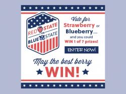 Watsonville, CA – California Giant Berry Farms is launching a two-month promotion this week to capitalize on building buzz about and interest in the 2016 Presidential Election, as well as to inject some light-heartedness into a less-than-light spectacle. The company looks forward to using the timing and the ‘color coded’ campaign to raise awareness of the California Giant Berry Farms’ brand and berries (specifically strawberries and blueberries) while enhancing relationships with shoppers.