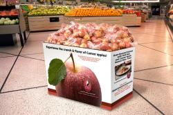 The merchandiser is shipped to retailers in trucks with fruit from Washington and is designed to be set up in stores in less than one minute. Each unit contains it’s own set up instructions and holds either bulk or bagged product. The merchandisers feature a recipe for low calorie Chili-rubbed Salmon with Cameo® Apple and Peanut slaw, available for download by consumers from the CAMA website. CAMA also uses Facebook advertising and other forms of media while on ad with retailers. Along with the recipe, the promotion highlights the Cameo® variety’s crunch to consumers through it’s theme of “Experience the Flavor and Crunch of Cameo® Apples”.