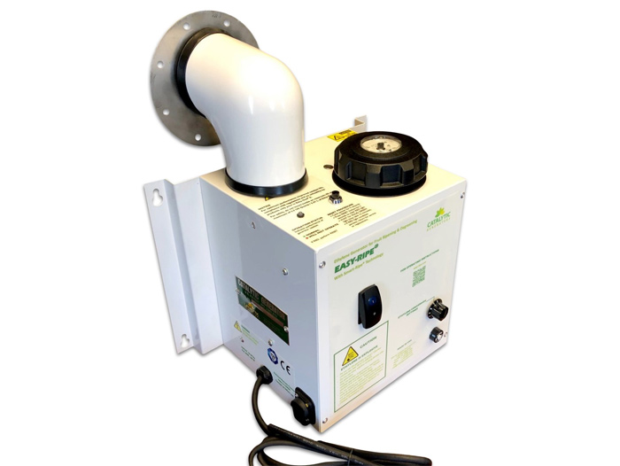 NORFOLK, VIRGINIA, USA – Catalytic Generators today announced the launch of a new version of the Easy-Ripe® Generator that can be permanently installed on the exterior of a ripening room. Called the Easy-Ripe® XT, this model produces ethylene on the room’s exterior and uses a flue system to direct the generator’s ethylene output into the room. Rooms that have little or no convenient space for the generator inside the room will benefit from this exterior mounting of the unit.
