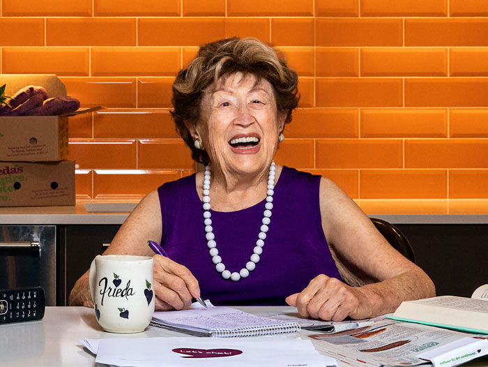 Frieda was an incredibly vibrant woman her entire life and most recently received the Center for Growing Talent Catalyst Award which she accepted in person October 2019 during the Produce Marketing Association Convention in Anaheim. Keynote speaker Queen Latifah saluted theKiwiQueen when she took the stage.